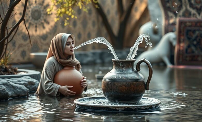 - کیفیت آب: آب زلال نماد خیر و نیکی، و آب کدر یا گل آلود نشانهای از مشکلات و ناخوشیهاست.